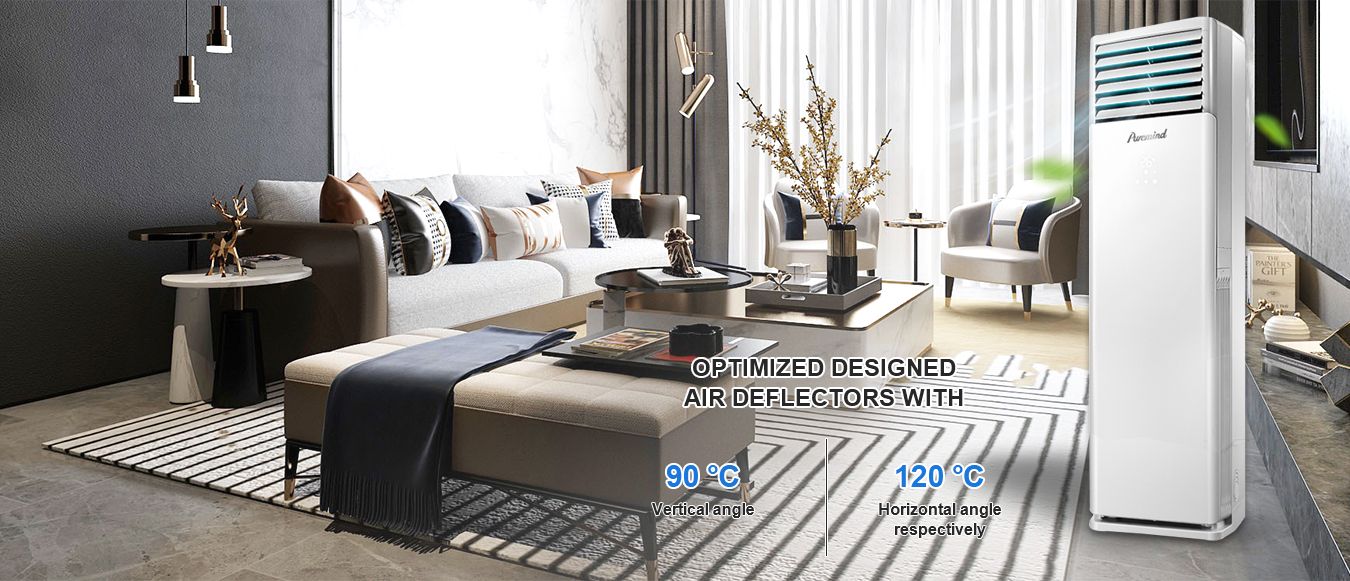 4D air swing sends cool air to every corner: optimized designed air deflectors with 90° vertical angle and 120° horizontal angle respectively.